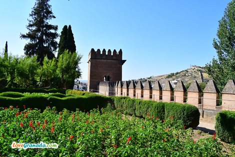 To the west, we can see the Torre de la Vela (Watch Tower or the Candle Tower), the Torre de los Hidalgos (Tower of the Nobles) and the Torre de la Pólvora (Powder Tower).