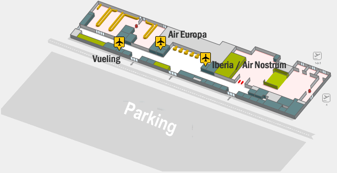 Flights with stops: Alicante, Bilbao, Barcelona, Canary Islands, Menorca, Mardid, Malaga, Oviedo, Seville, Santiago de Compostela, Vigo, Valencia and Zaragoza.